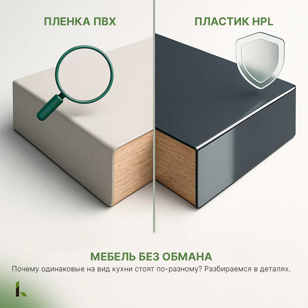 В чем заключается негласная уловка? В погоне за привлекательной ценой некоторые производители могут называть фасады в ПВХ-пленке «пластиковыми». Формально они не лгут — поливинилхлорид (ПВХ) тоже является видом пластика. Но по своим эксплуатационным свойствам он кардинально уступает настоящему бумажно-слоистому пластику HPL (High-Pressure Laminate).